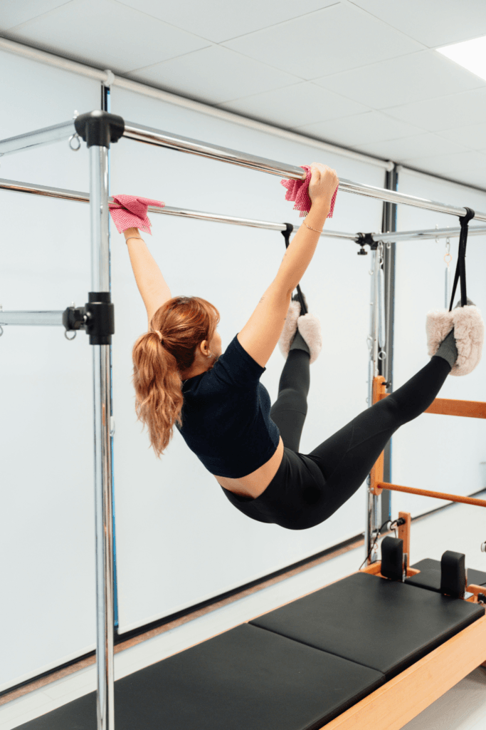 During an at-home workout, you can use the ladder barrel to perform Pilates equipment workout exercises that focus on extension, lateral flexion, and spinal articulation. It’s excellent for moves like side sit-ups, back extensions, and hamstring stretches. The curve of the barrel supports your spine, allowing for deeper range of motion and more comfortable stretching. The ladder rungs provide stabilization and adjustable difficulty, giving you control over how much stretch or resistance you experience.