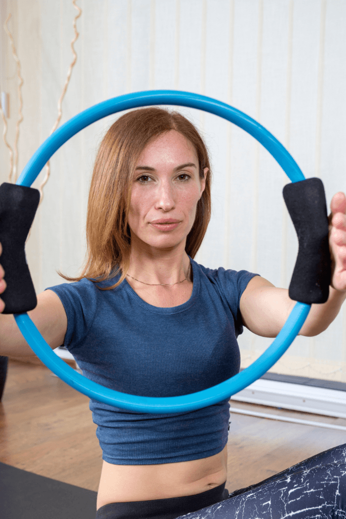 The Magic Circle is one of the most well-known pieces of small Pilates equipment. It’s a flexible, lightweight ring with padded handles on each side. Although simple in design, it adds powerful resistance to traditional Pilates exercises, helping to engage the inner thighs, arms, core, and glutes more deeply.