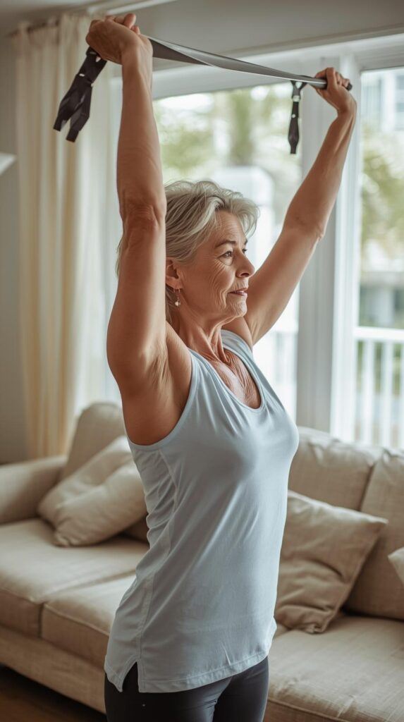 Pass-throughs improve shoulder flexibility while maintaining joint control. They also encourage better alignment between the shoulders and thoracic spine. This exercise is especially useful for people who feel restricted during overhead lifting.
